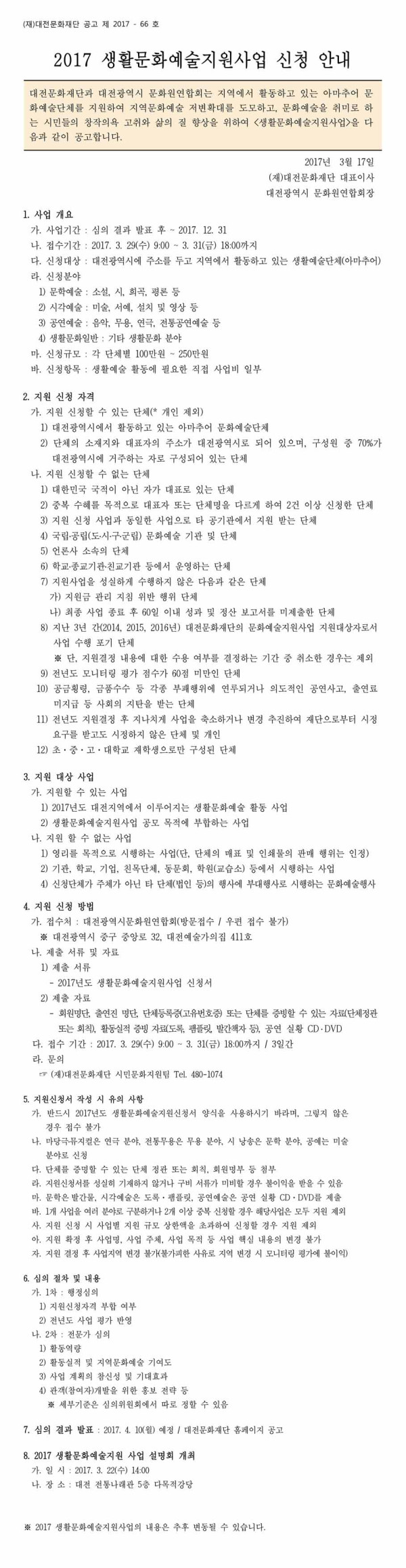 2017 생활문화예술지원사업 신청 안내 > 문화소식