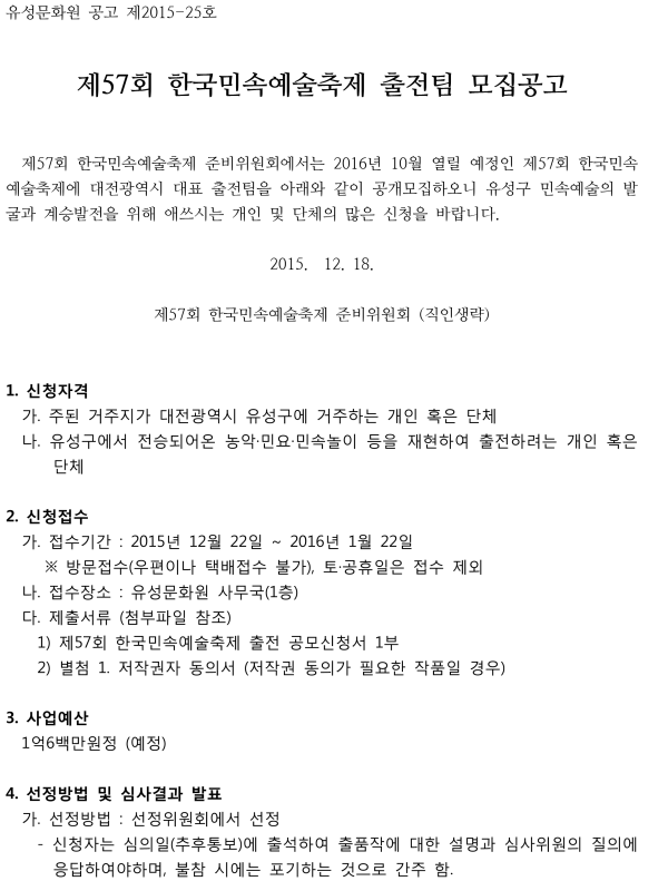 제57회 한국민속예술축제 출전팀 공고 > 공지사항