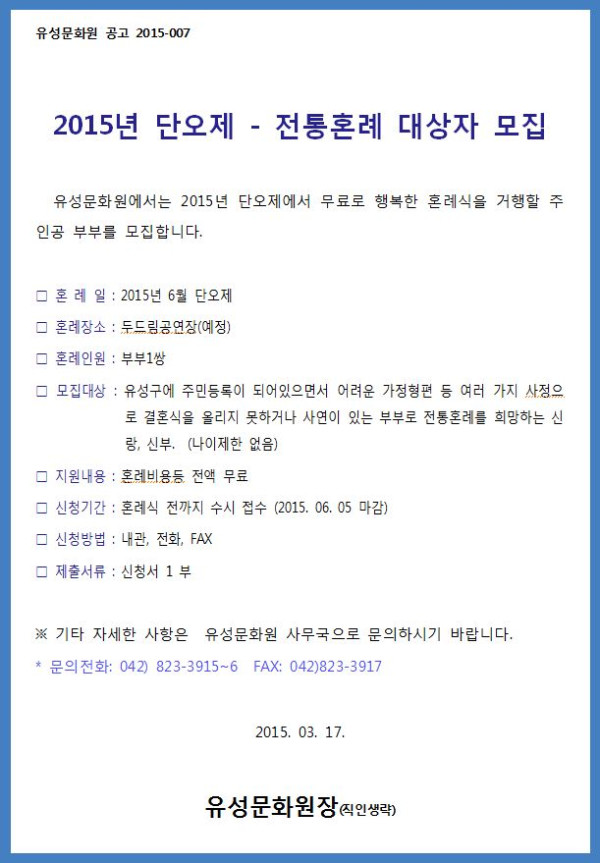 2015년 단오제 - 전통혼례 대상자 모집