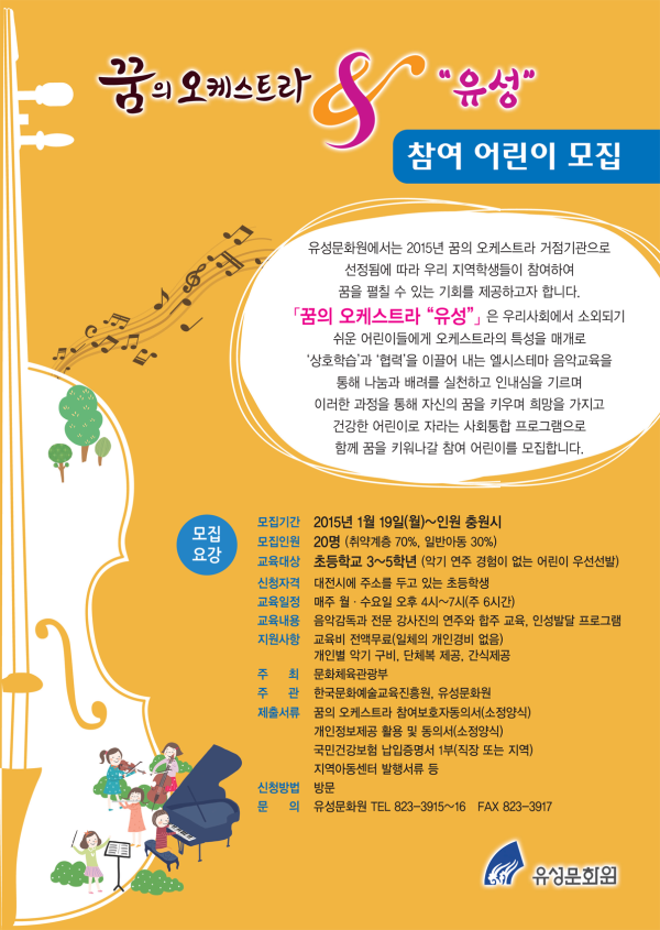 2015「 꿈의 오케스트라 & 유성」 추가 단원 모집 > 공지사항