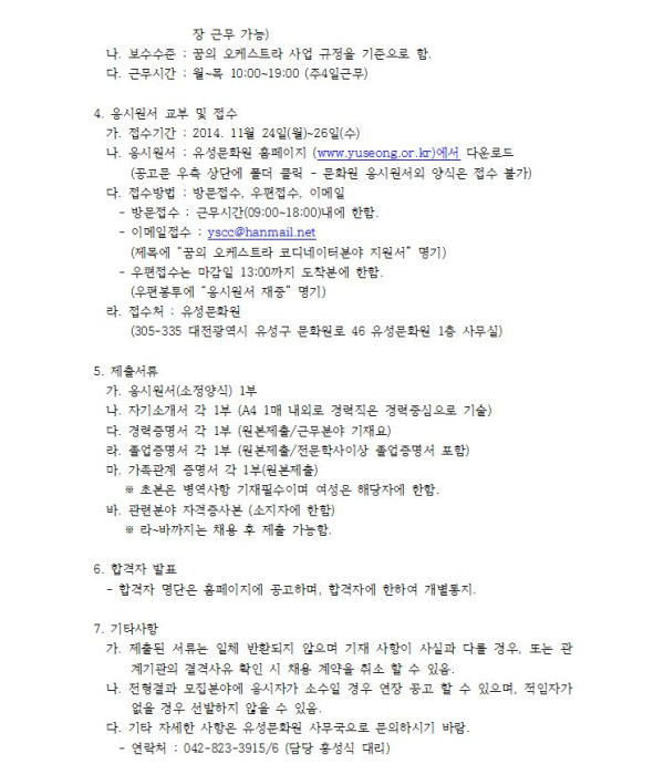 - 이전글꿈의 오케스트라 유성 코디네이터 서류전형 합격자 14.11.27