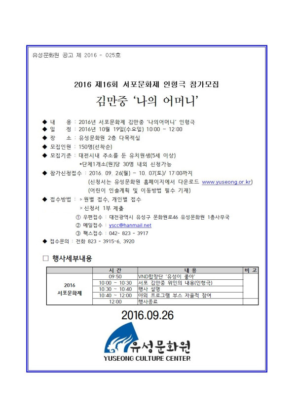 2016 제16회 서포문화제 인형극 참가모집 > 공지사항