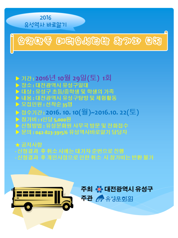 2016 유성역사 바로알기 오감만족 매력유성탐방 참가자 모집 > 공지사항