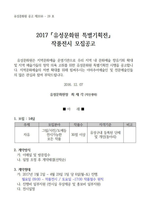 2017 유성문화원 특별기획전 작품전시 모집공고 > 공지사항