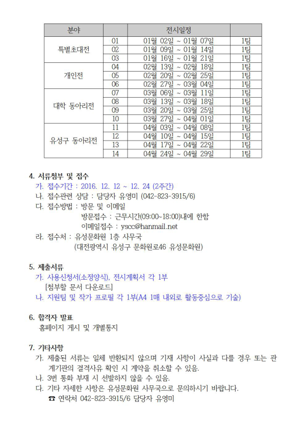 2017 유성문화원 특별기획전 작품전시 모집공고