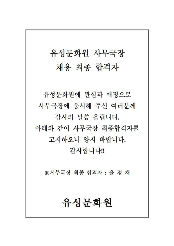유성문화원 사무국장 채용 최종합격자