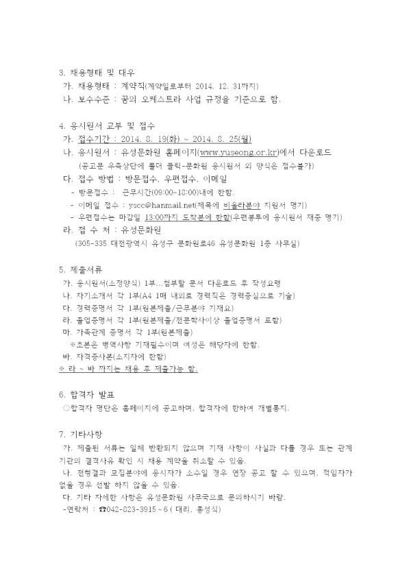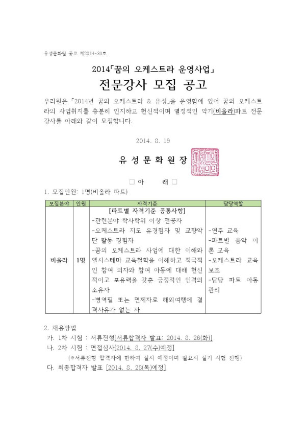 2014 「꿈의 오케스트라 유성」운영사업 비올라파트 강사 모집 공고