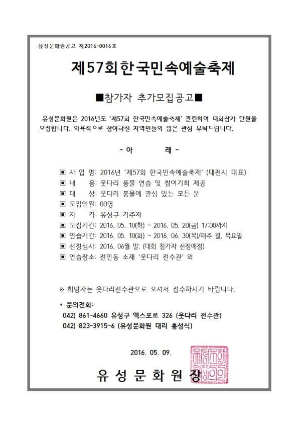 제57회 한국민속예술축제 참가자 추가 모집공고