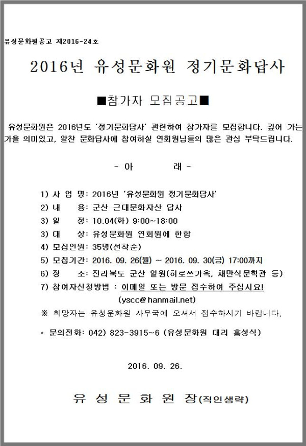 2016. 유성문화원 1차 정기문화답사 참여자 모집
