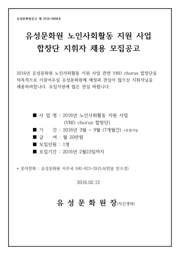 노인사회활동지원사업 합창단 지휘자 채용 공고 > 공지사항
