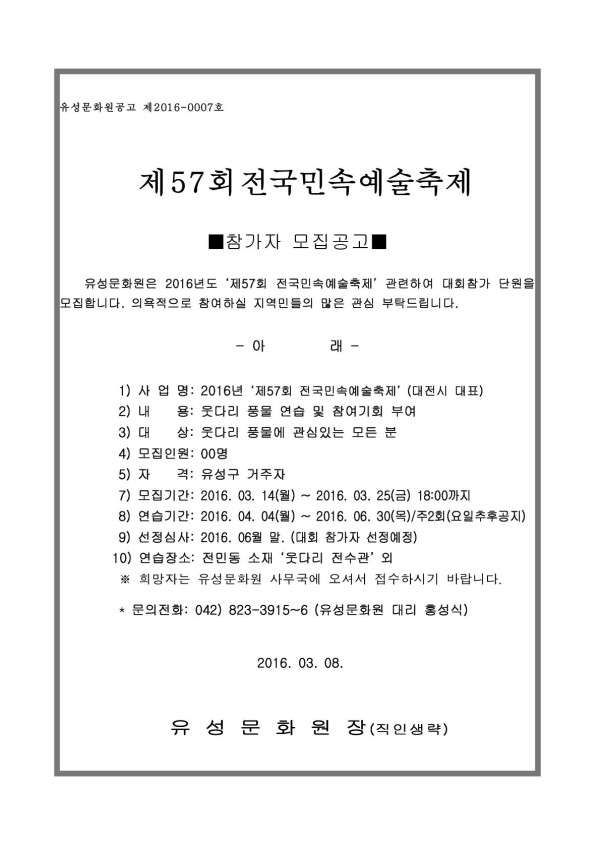 제57회 한국민속예술축제 참가자 모집공고 > 공지사항