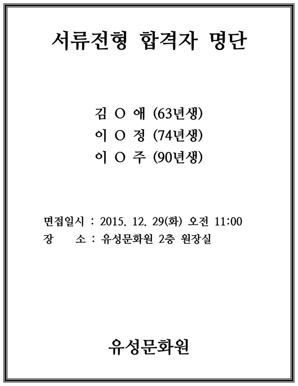 노인사회활동지원사업 전담인력 서류전형 합격자