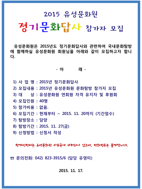 2015 유성문화원 정기문화답사 참가자 모집 - 담양
